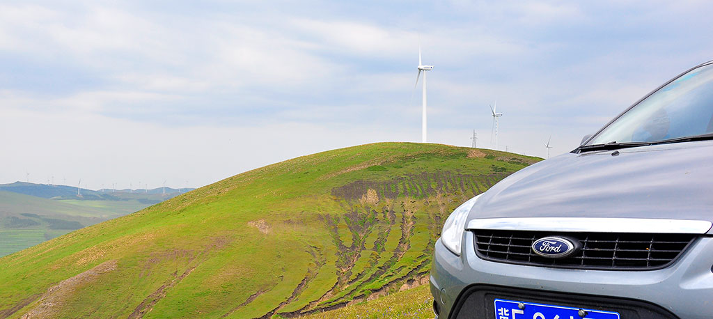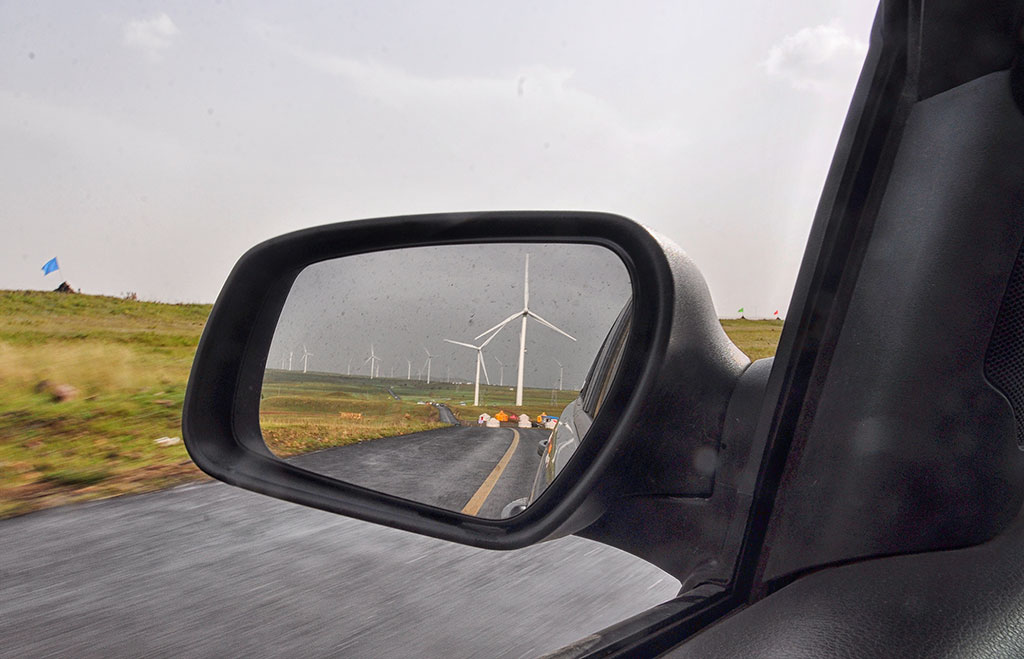 绿野中列队的“钢铁士兵”们在后视镜中慢慢后退、变小、远去、消逝~~ 下次再见,大风车![LY:0108]