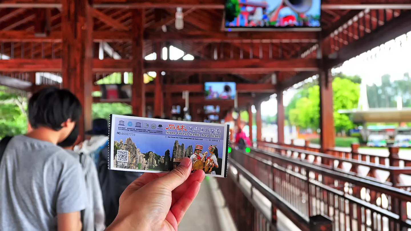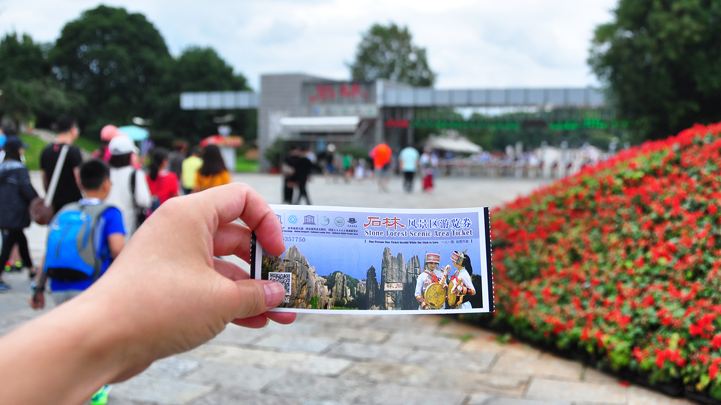 从豪生酒店乘车一小时有余,抵达石林风景区,景区比较大需要乘坐电瓶摆渡车,所以要购买门票和车票,还有车票要保存好,因为返程坐车还是要验票的。丢了怎么办?花银子补呗~