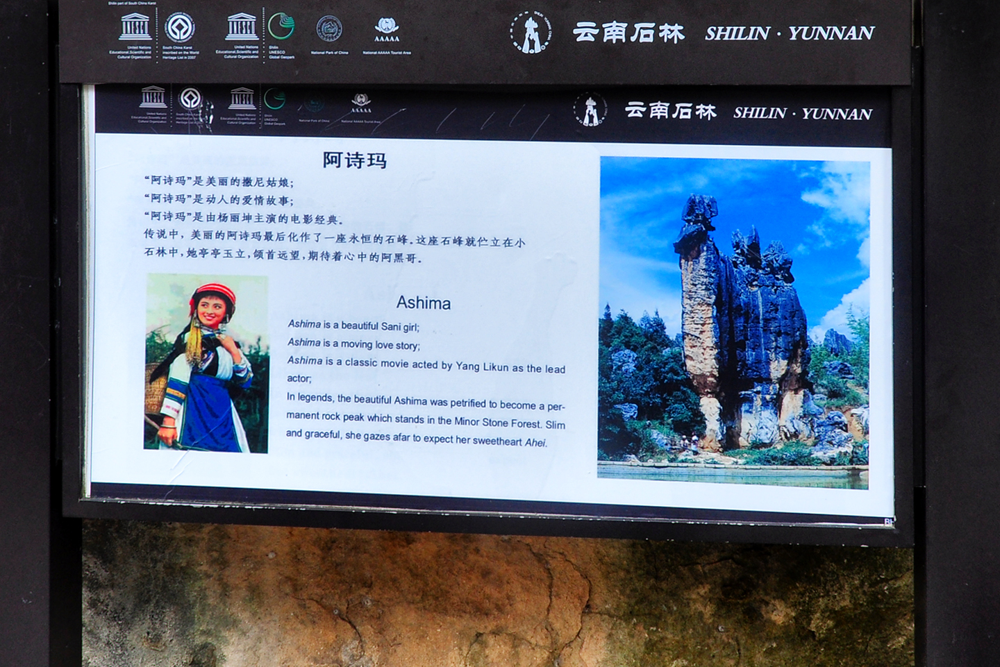【小石林】(阿诗玛景区),宽厚墩实的石壁像屏风一样,将小石林(阿诗玛景区)分割成若干园林。小石林里最有名气的景点当数“阿诗玛”。 传说美丽的撒尼姑娘阿诗玛,化作永恒的山峰,矗立在小石林里,期待心中的阿黑哥~