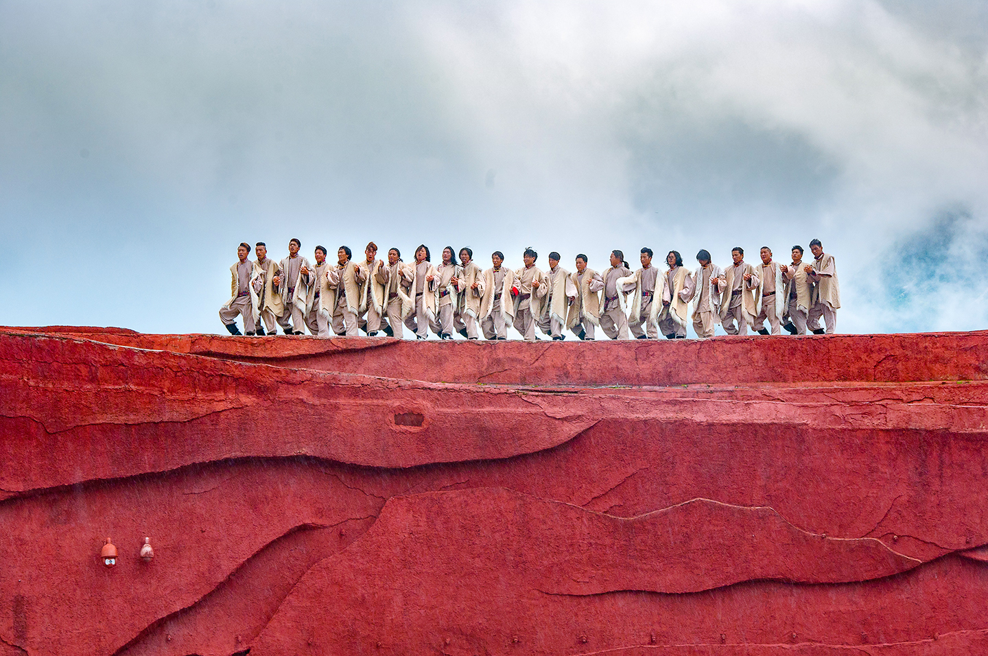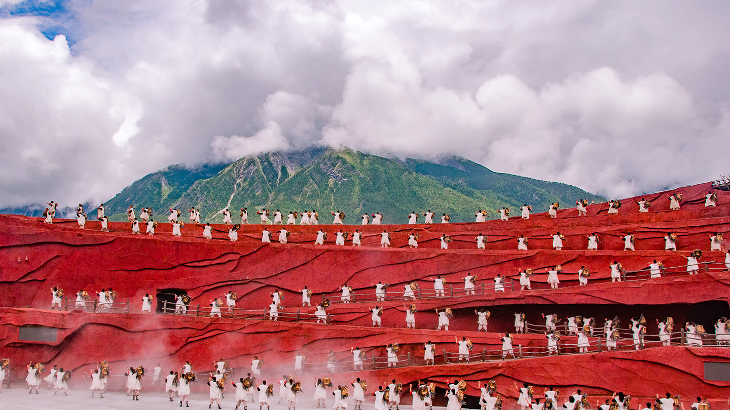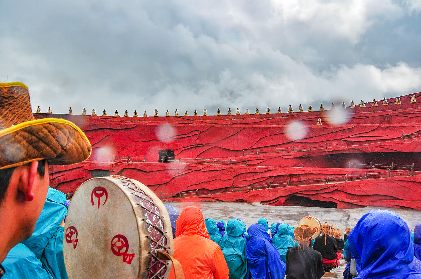 这是一场真正融入大自然的的演出,雪山为幕、红土就是舞台,纵使阴晴雨雪来袭,也只会成为表演的映衬; 天地共舞、自然同声,正是这原生、灵魂表演的魅力~