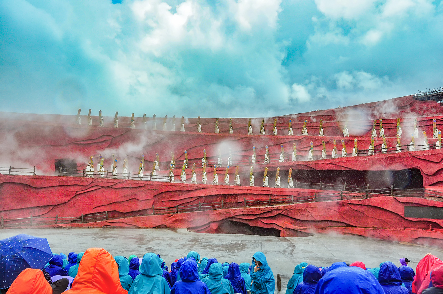 走在剧场通道,会有工作人员不断提示,让拿取通道旁的雨衣。——现在没有下雨啊,有人不解的问,呵呵,雨衣不是现在让你穿的,玉龙雪山的天气多变,有备无患。还有因为是露天实景演出,观众席的座椅偶有积水,可以用雨衣铺垫一下。