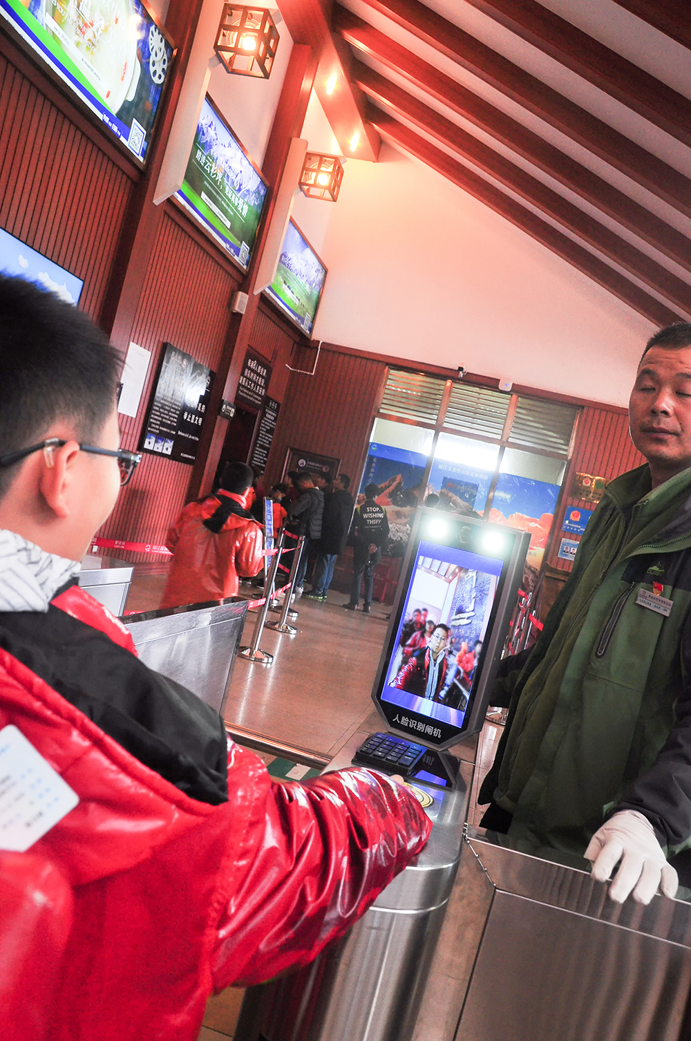 乘车到达3356米处,大索道的起点。玉龙雪山盛名在外,敬仰之人也如滔滔江水绵绵不绝,排队的景象自然不会丢范~ 检票区前人影绰绰,在铁栏杆的限制下,人流形成一个折返数次的长龙,密密麻麻的盘在门外成为一片人海。 这场景,可以让你更加深刻的理解点成线、线成面的科学道理[LY:0133][LY:0102]