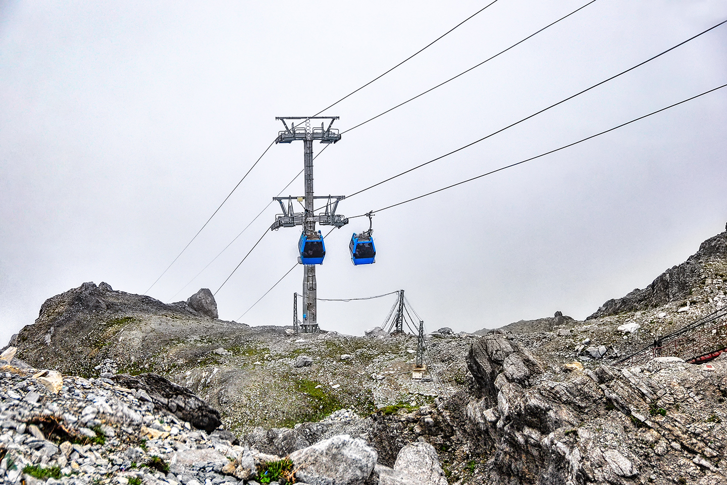 天气善变,排队等候缆车的过程,天已有放晴的趋势,果然坐上缆车后,云层就已渐稀薄,雪山袒露出伟岸的身躯,不在遮掩,上山时无法看到的景色,终于尽收眼底~
